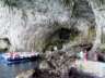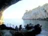 Sharing a car park with the municipal swimming pool, first buy your tickets at the office then descending the steps from the parking area, follow the pathway as its meanders ever downwards in a series of switchbacks down the rock face, finally curving around the contours of the cliff face with spectacular views across the aquamarine waters of the seas below. Finally the path drops to the waterside, small boats serviced by a timber pier offer paid voyages into the ancillary caves and nearby features.